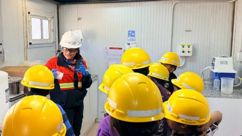 La visita incluyó un recorrido por la Planta de Procesos y el Laboratorio Químico, donde el equipo técnico de la empresa explicó a los estudiantes las tareas y procedimientos que allí se realizan para la obtención del carbonato de litio.